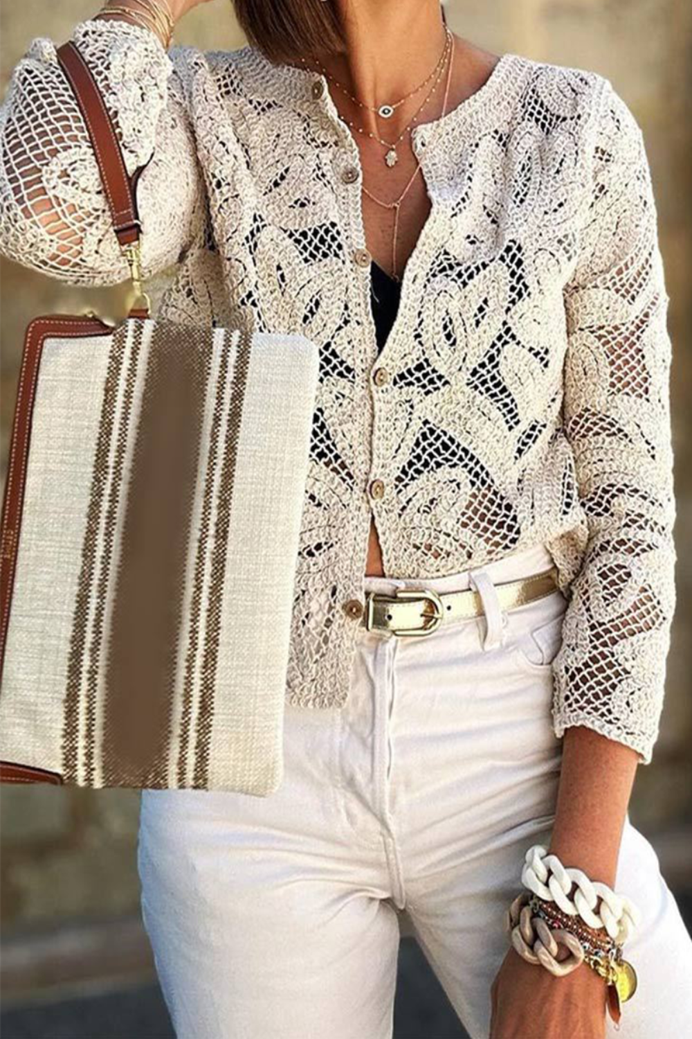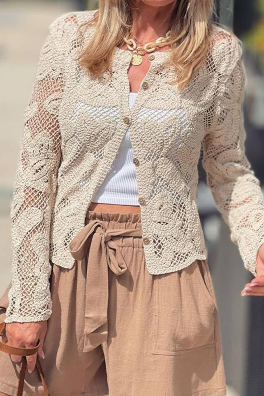 The Roselani Outerwear is the layering essential your wardrobe needs. With delicate hollow-out details and a classic button-up front, it brings subtle charm to your casual looks. Lightweight and versatile, it's the perfect finishing touch for breezy days and relaxed evenings.