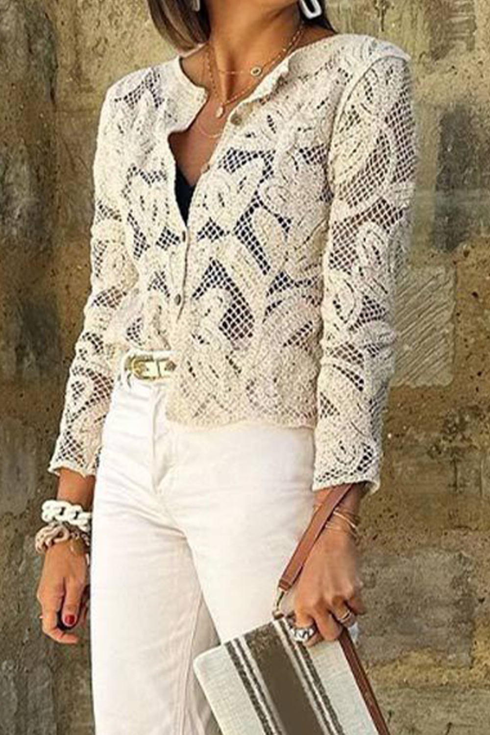 ROSELANI – CASUAL DAILY HOLLOW OUT BUTTONS O-NECK OUTERWEAR